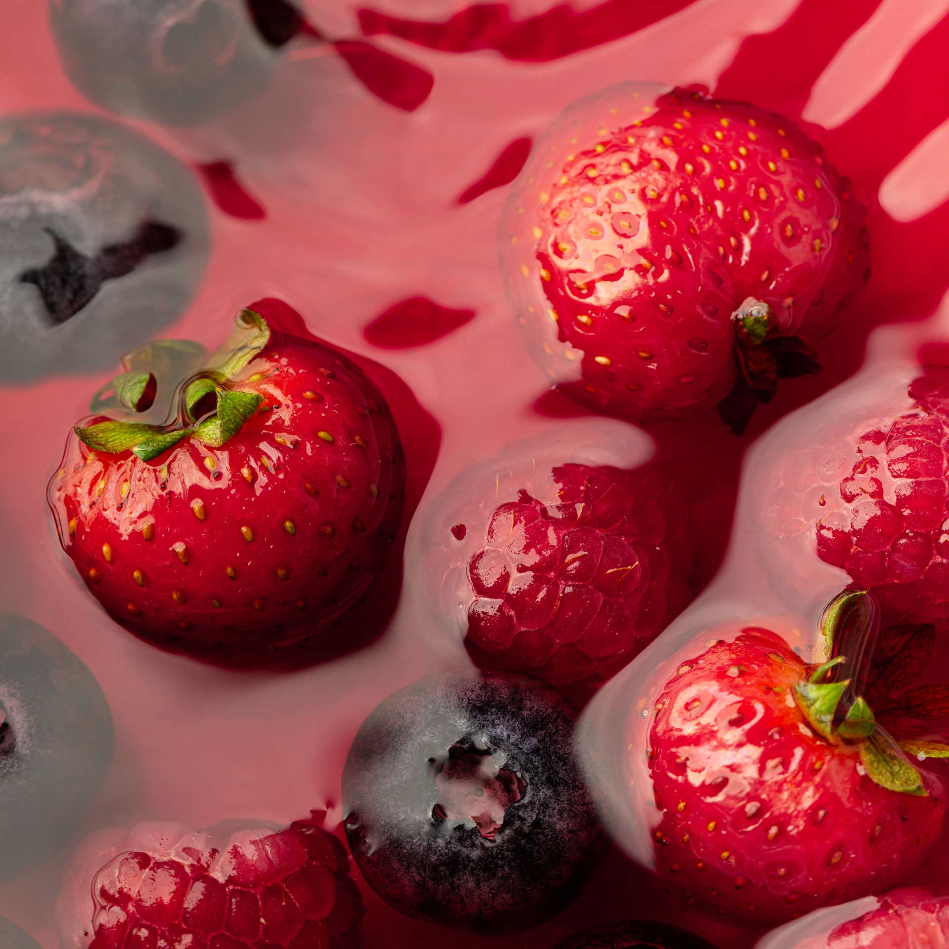Fiori e frutti misti (97%) in proporzione variabile (karkadè, pezzetti di mela disidratati, scorze di rosa canina essiccate, ribes neri essiccati, bacche di sambuco, mirtilli essiccati), aromi.